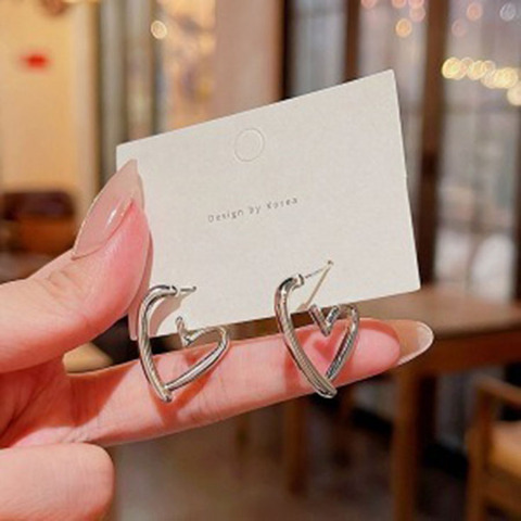 Pendientes de corazón hueco minimalistas de diseño de gama alta a la moda para mujer; Pendientes de lujo para un público nicho.