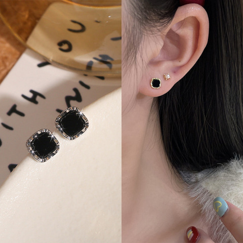 Pendientes cuadrados negros para mujer; Pendientes simples, de moda y lujosos; Joyería delicada, elegante y de alta gama.