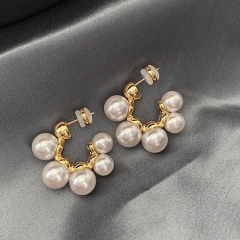 Pendientes de perlas de doble C de Metal europeo y americano Pendientes de alta calidad de marea de temperamento