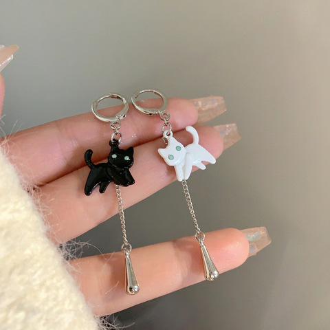 Pendientes de gota de agua de gota de aceite coreano japonés chapado en oro de diseño creativo divertido gatito oreja hebilla borla de moda estilo de viento Ins